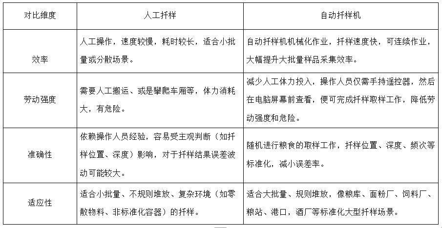 進行原糧的扦樣工作,一張圖告訴你人工扦樣和自動扦樣機扦樣有啥區別?